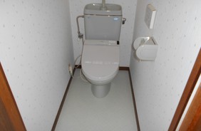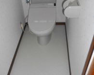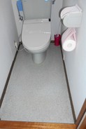 既設のクロス、クッションフロアめくり、下地パテ補修した後、新しいクロス、クッションフロア貼っていきます。その際、現在設置してある便器、換気扇、照明、紙巻器等を一時取外し工事をし、その後再度元へ復旧作業となりますのでお手洗いを使用できない時間帯をお客様にお伝えしてスムーズに目標通り作業を進めることが出来ました。