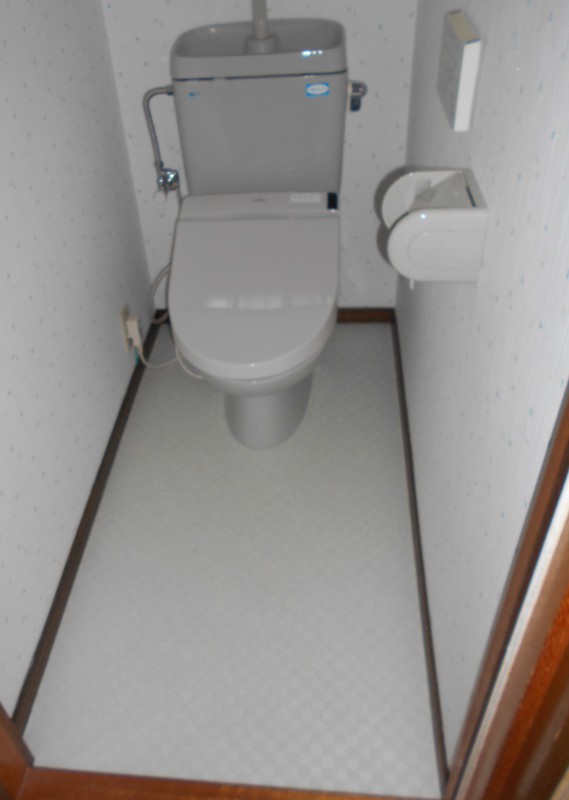 トイレの壁・天井クロスの貼り替えと床のクッションフロア貼替えをさせていただきました。