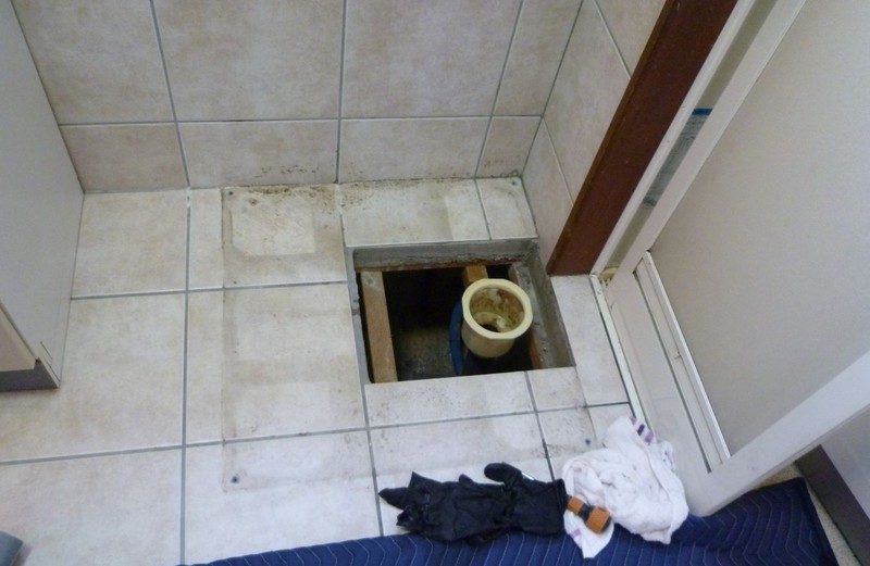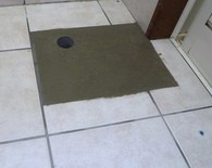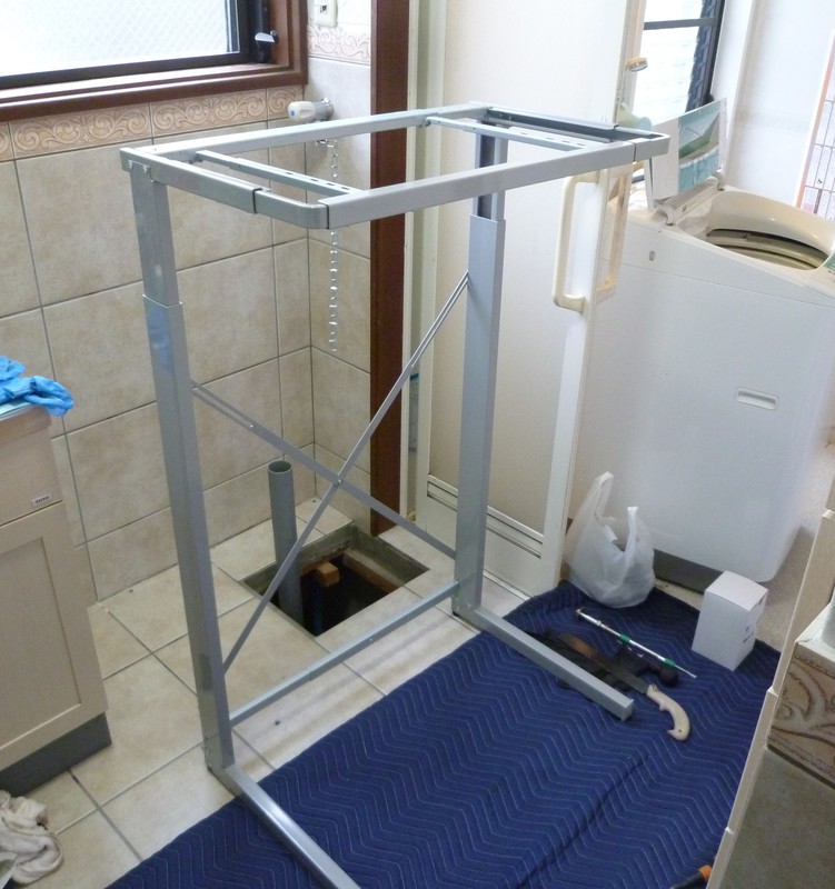 排水管を移設し床面をモルタルにて仕上げ、乾燥機のラックを組み立てて、所定の位置に設置していきます。配水管の移設が必要となる場合は、このような工事が必要となりますのでお気軽にご相談くださいませ。