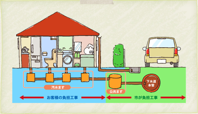 そのためにまず公共下水道へ流す為の設備を宅内に設置することが